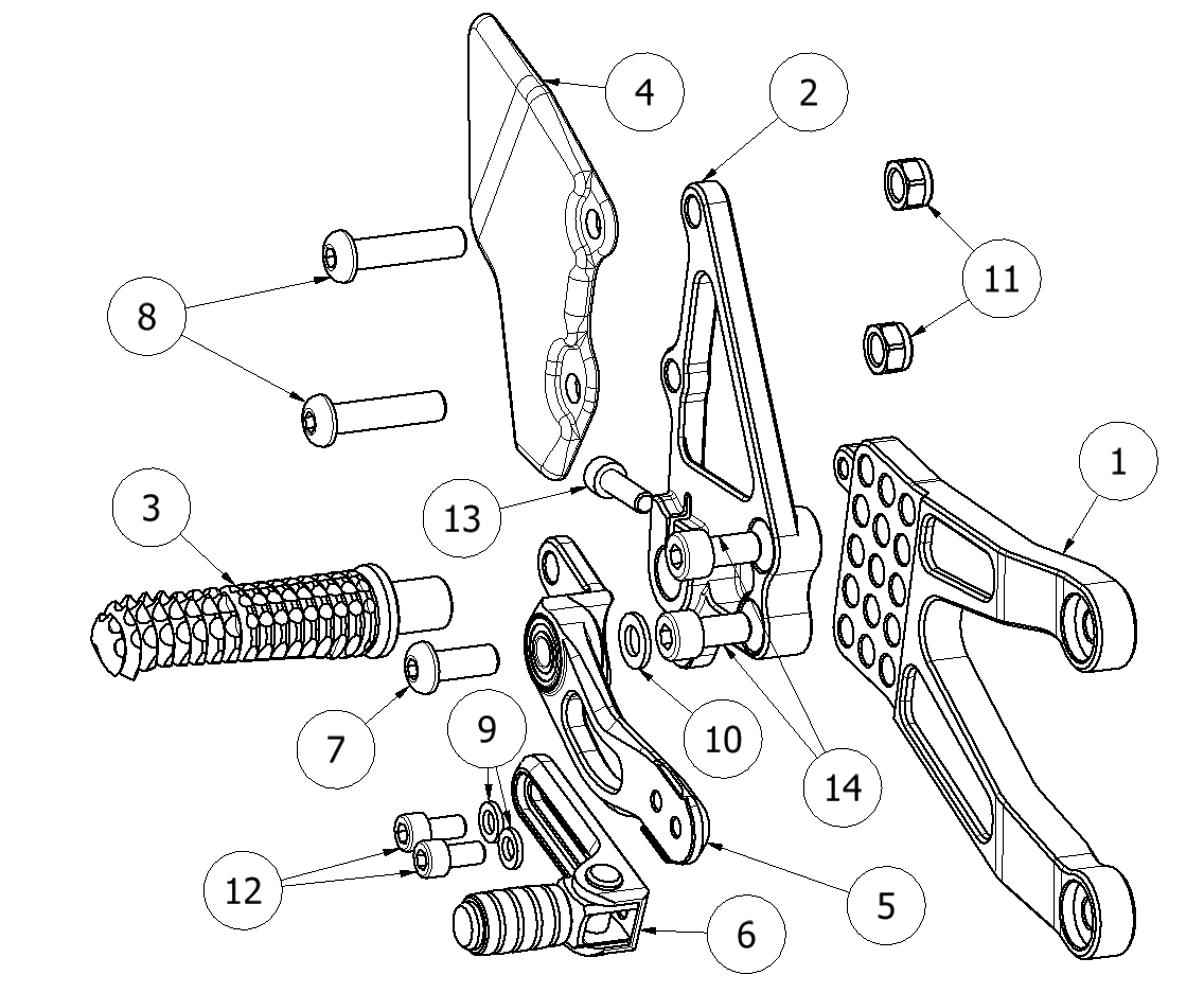 6 90111023B Brake Lever Slider Assembly w/Pedal, Peg Braket Mounting, Black