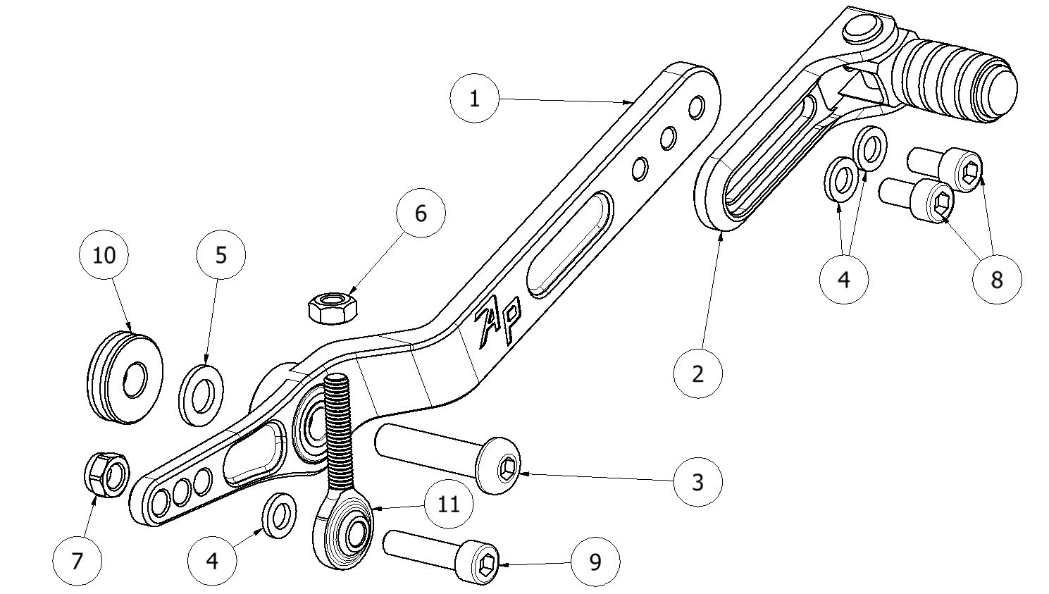 2 90111022G Shift Lever Slider Assembly w/Pedal, Engine Mounting, Aero Hard