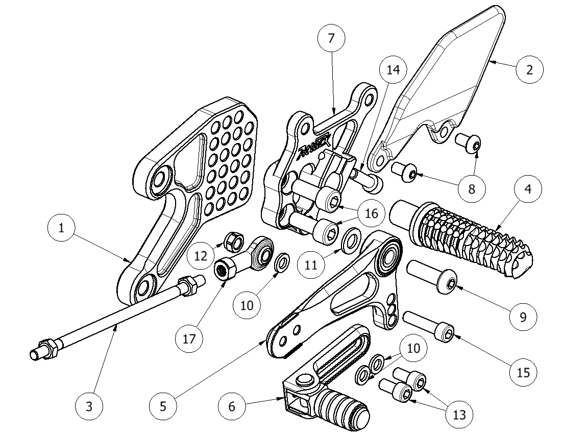 17 90110124G Foot Peg, Pinch -Type, Short (10mm Shorter Race Option), Aero Hard
