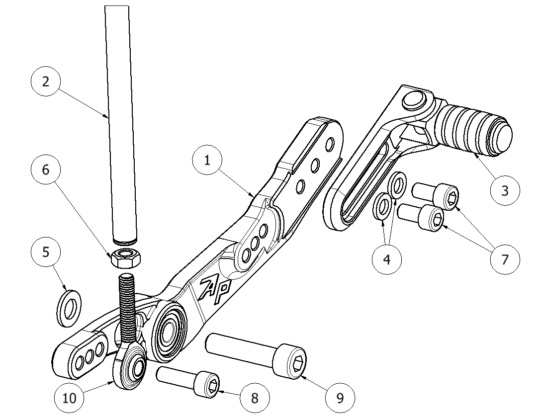 3 90111022B Shift Lever Slider Assembly w/Pedal, Engine Mounting, Black